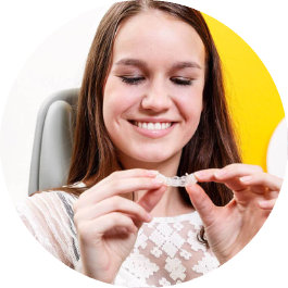 Transparente Schienen, zur Beseitigung einfacherer Zahnfehlstellungen. Diese Schienen werden bei uns hergestellt. Jeder Schienensatz umfasst 2-3 Schienen (soft, medium, hard), mit denen schrittweise eine Verbesserung erzielt wird. Nach jedem Schienensatz nehmen wir einen neuen Abdruck. Je nach Fehlstellung benötigen wir mehrere Schienensätze.