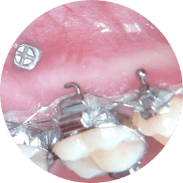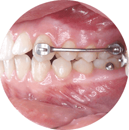 Spezialschraube, die in den Kieferknochen eingedreht wird. Da diese Schraube fest im Knochen verankert ist, kann sie als Widerlager genutzt werden. Nach Ende der aktiven Behandlung wird diese Schraube einfach herausgedreht.