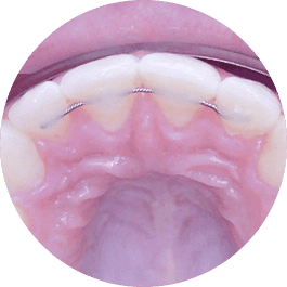 Kleiner Draht, der hinter die vorderen Zähne geklebt wird und von außen nicht sichtbar ist. Er sorgt dafür, dass sich speziell die Schneidezähne nicht wieder drehen können oder dort Lücken aufgehen. Er sollte immer eingeklebt bleiben.